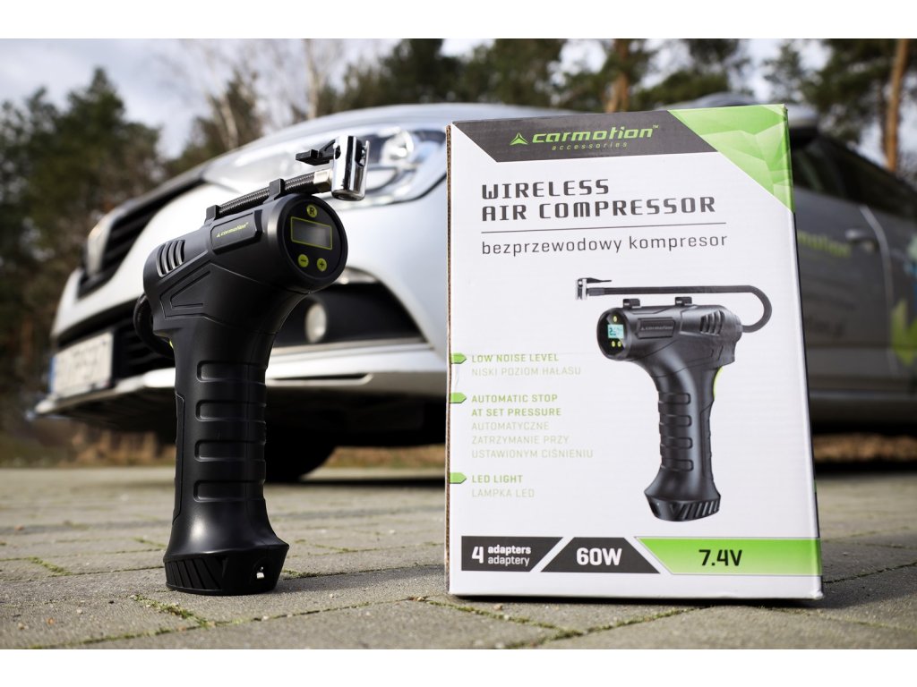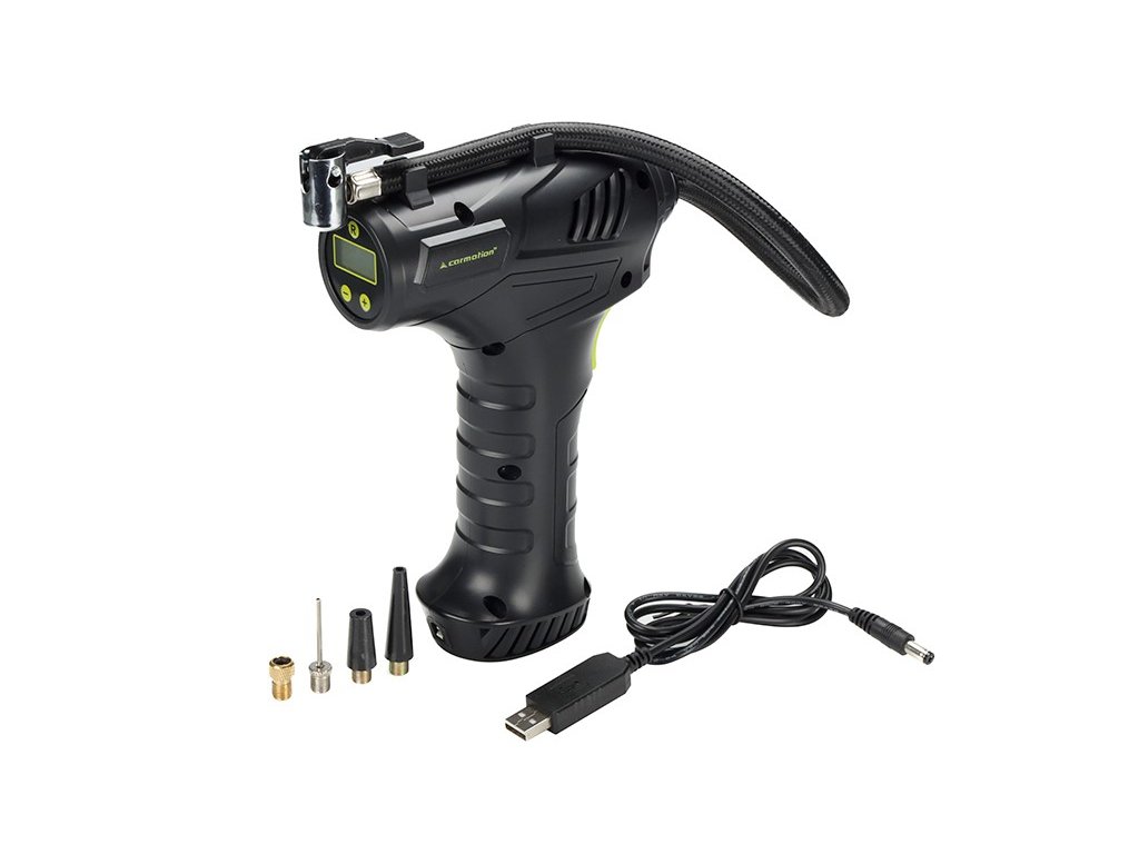 Kompresor má integrovanou nabíjecí baterii a je napájen na 7,4 V. Součástí balení je USB nabíjecí kabel, kterým lze zařízení pohodlně dobít v autě i doma. Díky LED svítilně je používání bezpečné i za tmy nebo v nouzových situacích.