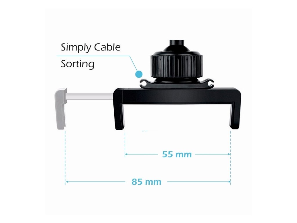 Husí krk je vyroben z hliníku, což zajišťuje vysokou stabilitu a pevnost – drží přesně ten tvar, jaký potřebujete. Rozpětí čelistí až 85 mm umožňuje uchycení široké škály smartphonů. Pro ještě lepší stabilitu je součástí balení podložka, která fixuje husí krk a zamezuje jeho pohybu.