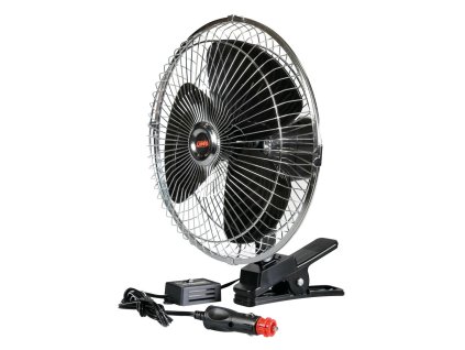 Ventilátor 24V JUMBO na klips od Lampa Italy s průměrem 25 cm, dvourychlostní spínač, možnost oscilace, otočný kloub a 2m napájecí kabel do zásuvky zapalovače. Ideální pro...