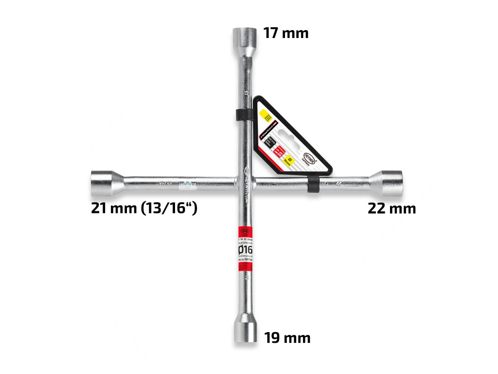 HEYNER® X-Wheel Wrench PRO je profesionální křížový klíč na kola určený pro rychlé a bezpečné povolování a utahování kolových matic. Díky čtyřem nástavcům 17 / 19 / 21 (13/16") / 22 mm se hodí pro širokou škálu vozidel – od osobních automobilů přes karavany, dodávky, autobusy až po traktory nebo vysokozdvižné vozíky.