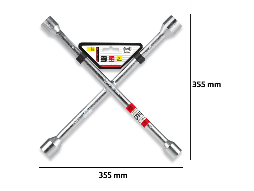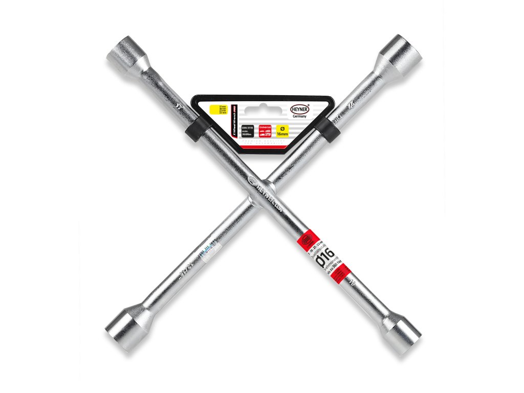 Křížový klíč na kola Heyner je vyroben z kvalitní tvrzené oceli průměr 15 mm, která umožňuje efektivní přenos síly s krouticím momentem až 368 Nm. Pochromovaný povrch zajišťuje odolnost vůči korozi a mechanickému opotřebení i při každodenním používání.