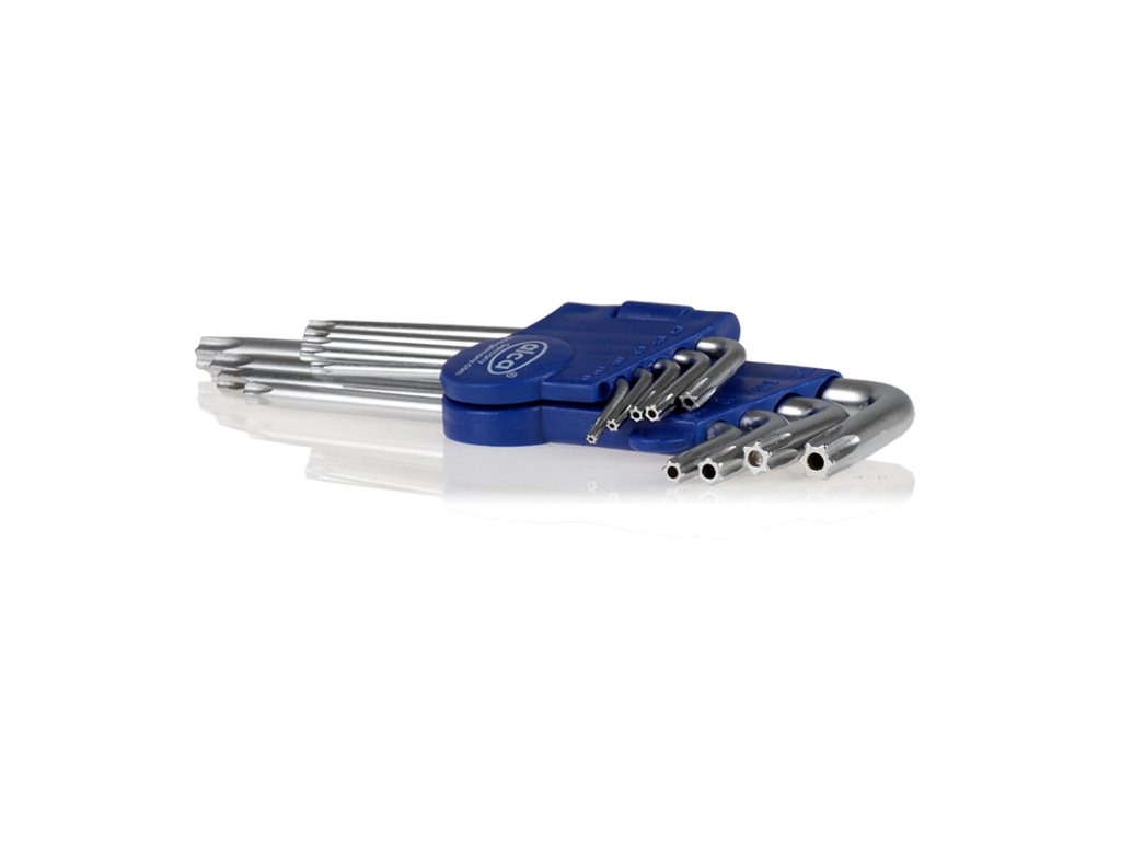 Profesionální alca® sada TX L-klíčů je ideálním pomocníkem pro práci se speciálními šrouby. Klíče na šrouby jsou vyrobeny z Chrom Vanadium kvalitní oceli, zajišťuje dlouhou životnost a vysokou odolnost i při intenzivním používání. V sadě najdete 9 velikostí (T10, T15, T20, T25, T27, T30, T40, T45 a T50), které pokryjí většinu běžných i méně obvyklých aplikací.
