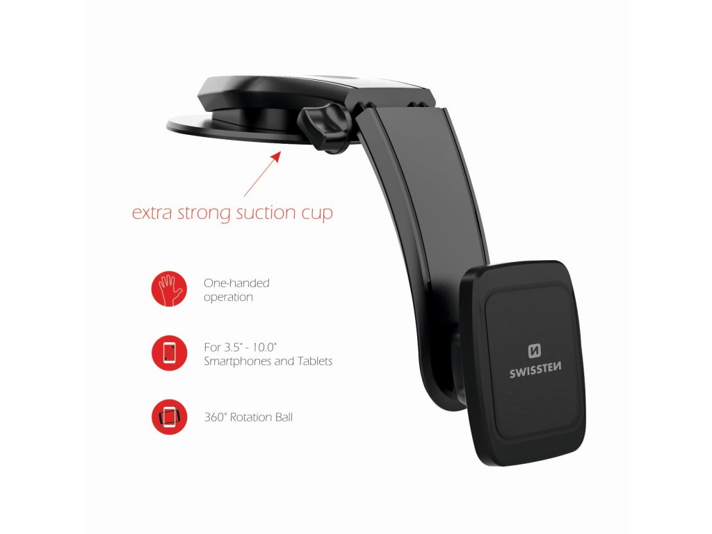 Magnetický držák SWISSTEN S-GRIP M5-R1 je ideální volbou pro ty, kteří chtějí pevné uchycení, spolehlivost a snadnou manipulaci při používání telefonu v autě.