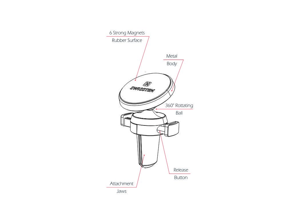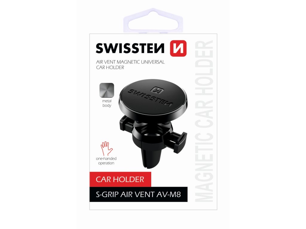 Magnetický držák SWISSTEN S-GRIP AV-M8 je praktické a elegantní řešení, které zajistí bezpečné používání telefonu během jízdy.