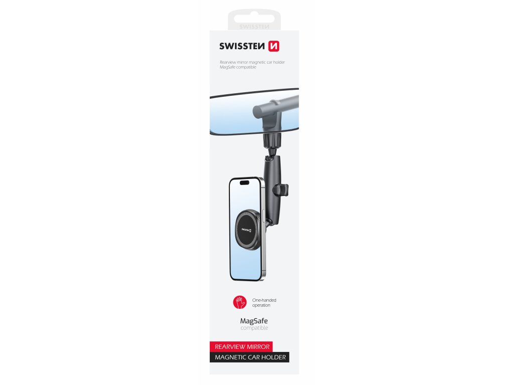 Dopřejte si spolehlivé a moderní uchycení telefonu v autě díky držáku SWISSTEN Mirror s technologií MagSafe.