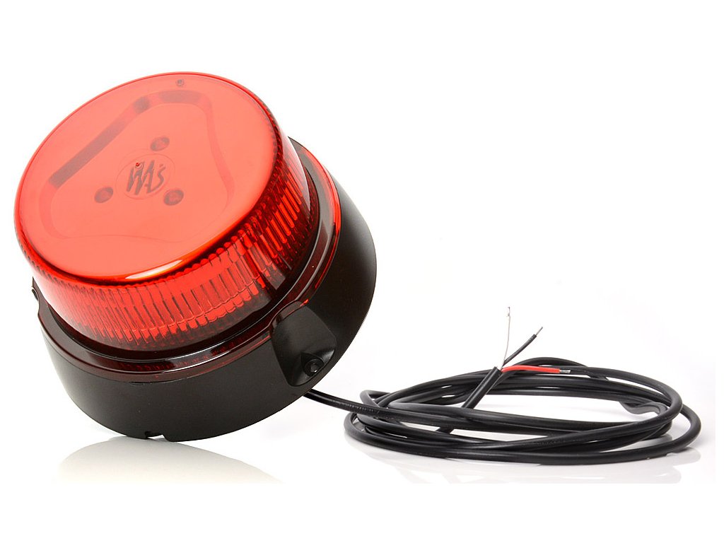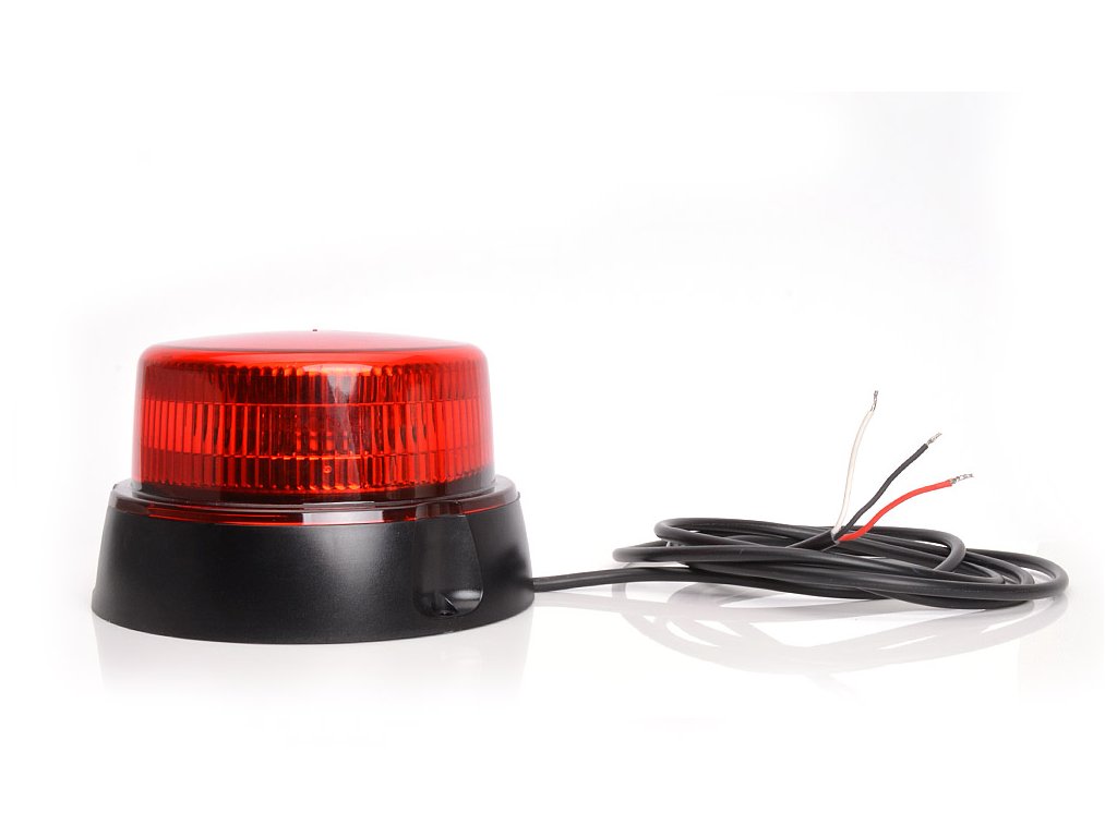 Maják LED 12/24V, 8 programů, červený kryt, pevný, kabel v délce 3 m, bez zástrčky