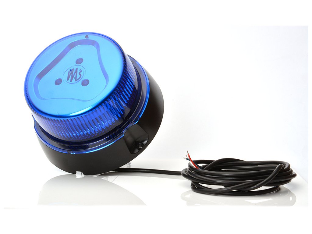 Maják LED modrý, 12/24V, 8 programů, pevný, kabel 3m, bez zástrčky