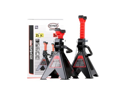HEYNER® UltraSafe PRO 3t – extrémně stabilní podstavce pod auto s nosností 3 tuny na kus. Nastavitelná výška 290–440 mm, 10 poloh, gumová opěrka. Sada obsahuje 2 ks.