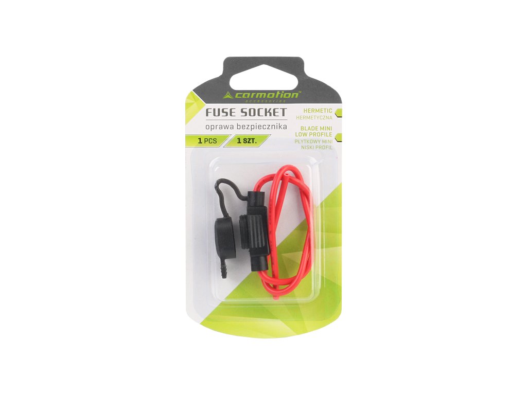 Kvalitní pojistková objímka MINI v provedení pro nízký profil je určena pro bezpečné uložení plochých pojistek. Hermetická obudova chrání pojistku před vlhkostí a nečistotami, díky čemuž je vhodná i do náročných podmínek. Součástí je kabel o délce 30 cm s průřezem 1,8 mm2, který umožňuje snadné zapojení do elektroinstalace.