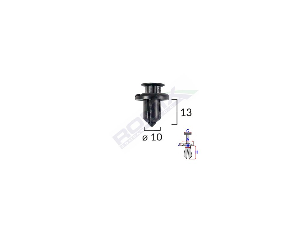 Wymiary: A 19,8 B 9,8 C 13,5 d 3,4 H 13 w otwór o 10