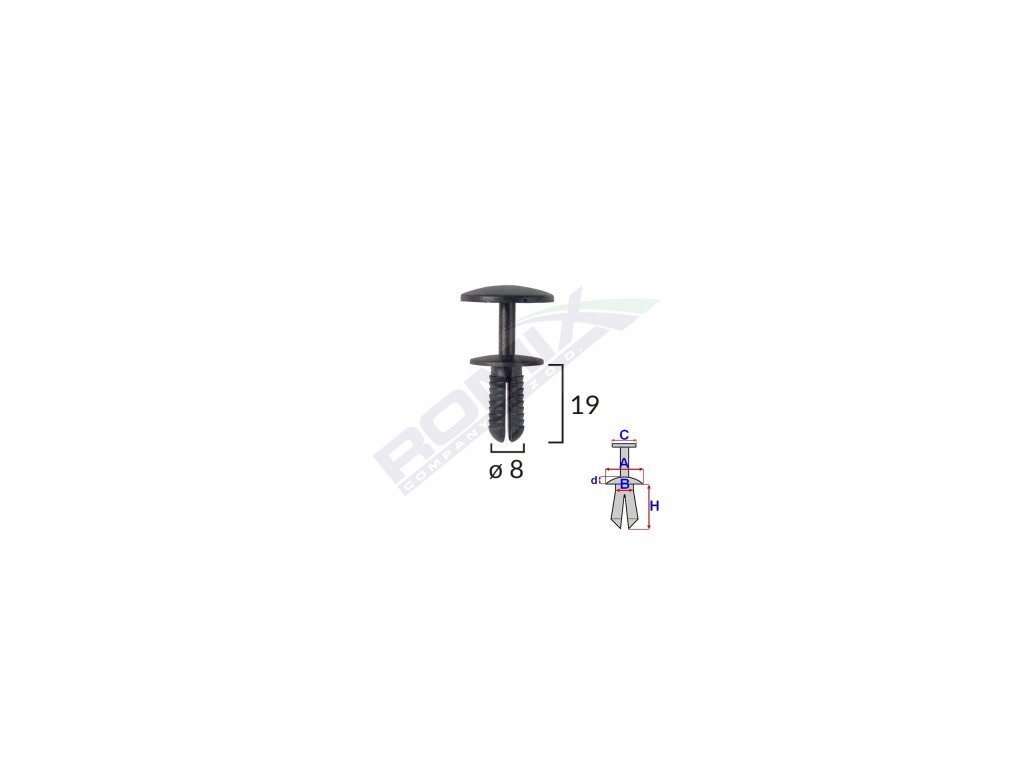 Wymiary: A 17,2 B 8 C 21,7 d 1,7 H 19 w otwór o 8
