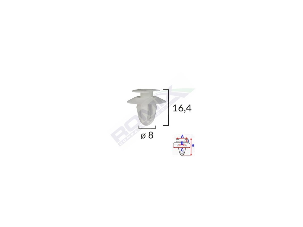 Wymiary: A 13 B 8 C 18 d 2,5 H 16,4 w otwór o 8