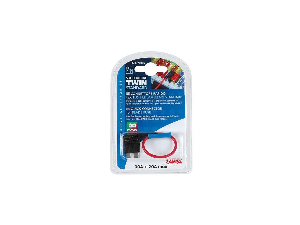Pojistkové pouzdro LAMPA TWIN od renomované italské značky je praktickým řešením pro rozšíření elektroinstalace ve vašem vozidle. Díky tomuto adaptéru můžete jednoduše a bezpečně napájet dodatečné zařízení – bez nutnosti složitých zásahů do původního obvodu.