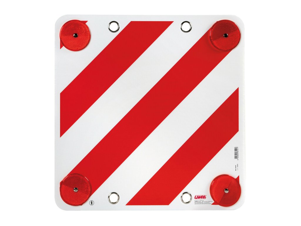 Bezpečnostní výstražná tabule o rozměrech 50 x 50 cm je ideální pro označení nákladů, které přesahují obrys vozidla – například nosiče kol na tažném zařízení nebo zadních dveřích, ale i další přepravované předměty na přívěsu, karavanu či obytném voze.
