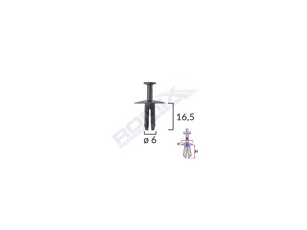 Wymiary: A 19 B 5,7 C 7,9 d 1,7 H 16,5 w otwór o 6