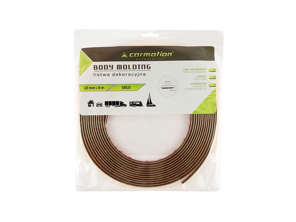 Tato zlatá dekorační lišta na auto je jednoduchým způsobem, jak rychle a bez náročných úprav změnit vzhled vozidla. Nabízí univerzální využití, snadnou aplikaci a dlouhou životnost i při venkovním použití.