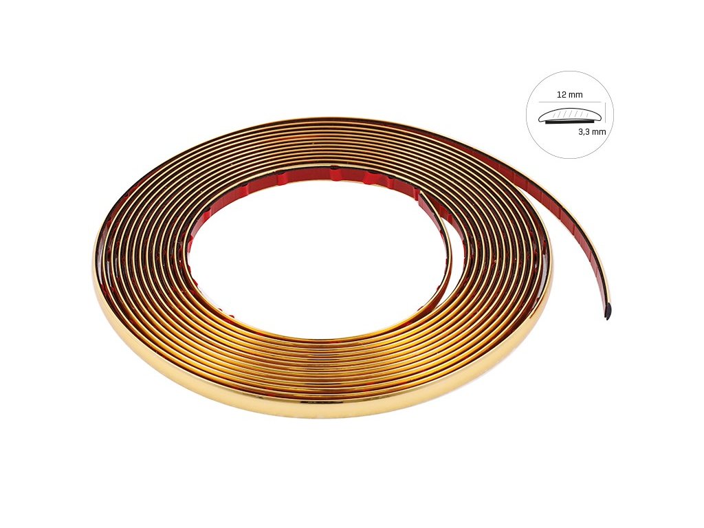 Dekorační lišta na auto v elegantní zlaté barvě dodá vašemu vozu originální a luxusní vzhled. Díky flexibilní konstrukci se snadno přizpůsobí tvaru karoserie i interiérových prvků a umožní přesnou instalaci podle vašich představ.