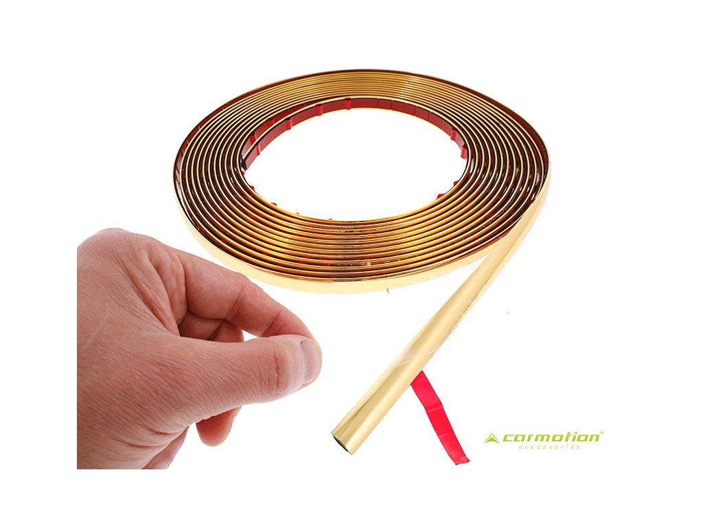 Dekorační lišta na auto v elegantní zlaté barvě dodá vašemu vozu originální a luxusní vzhled. Díky flexibilní konstrukci se snadno přizpůsobí tvaru karoserie i interiérových prvků a umožní přesnou instalaci podle vašich představ.