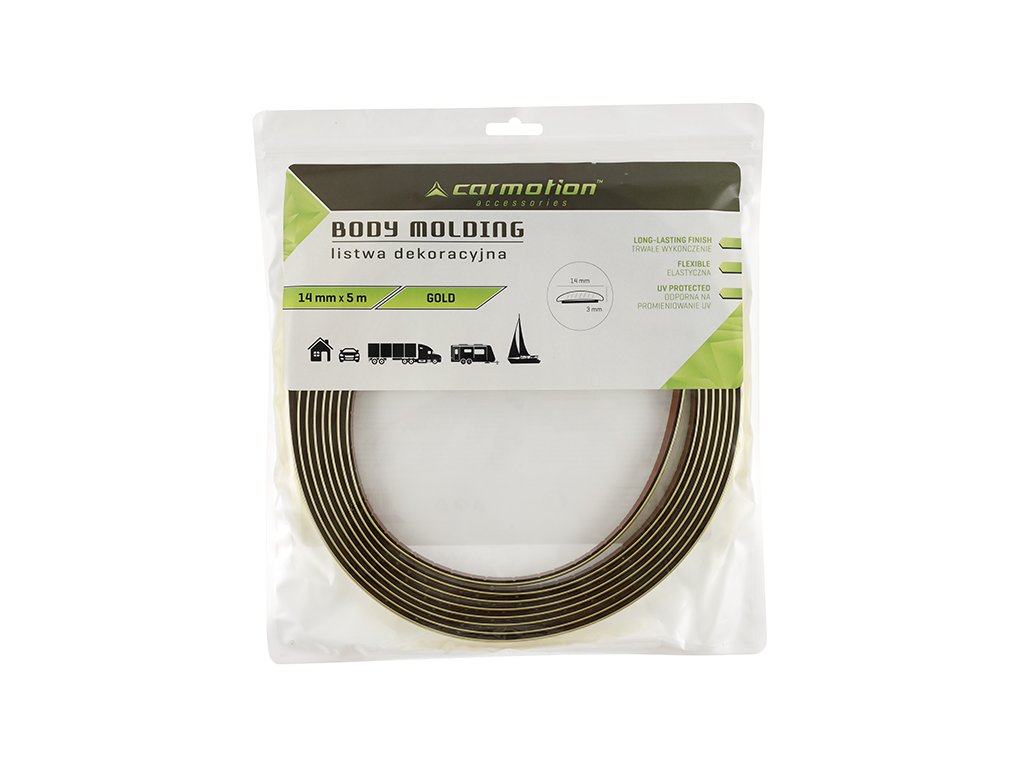 Tato zlatá dekorační lišta na auto je jednoduchým způsobem, jak rychle a bez náročných úprav změnit vzhled vozidla. Nabízí univerzální využití, snadnou aplikaci a dlouhou životnost i při venkovním použití.