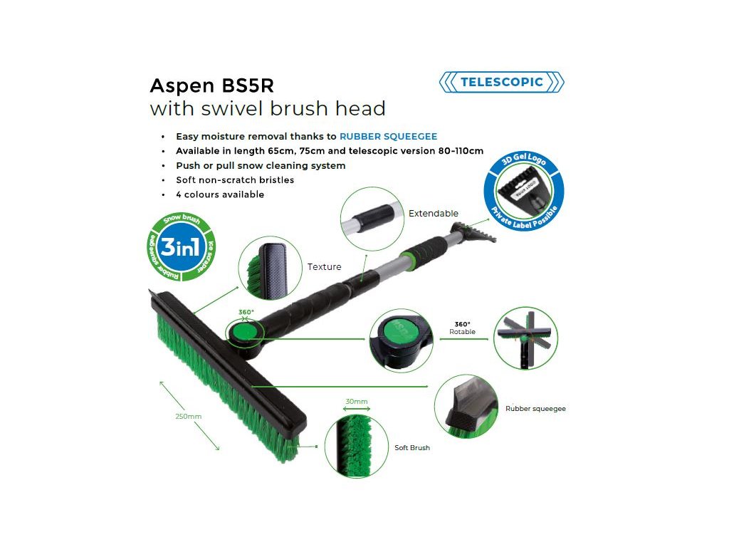 Díky teleskopické rukojeti, otočné hlavici a kvalitnímu zpracování je škrabka Aspen BS5R-80/100 ideální volbou pro rychlé a efektivní odstranění sněhu i námrazy z vašeho vozu.