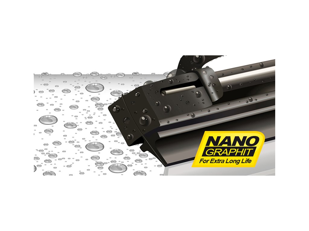 Stírací gumička s NANO povrchem je mimořádně pružná, tichá a odolná proti opotřebení. Její výkon byl testován a potvrzen nezávislou laboratoří Detroit Testing Laboratory, Inc. U.S.A. – i po 1 500 000 cyklech zůstává stírání bez šmouh a bez ztráty účinnosti.