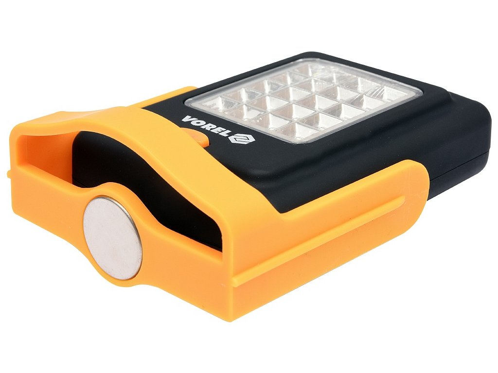 Napájení 3x AAA baterie (LR03, nejsou součástí balení). Svítilnu lze snadno upevnit vestavěným magnetem ve výklopném držáku, nebo zavěsit na zabudovaný výklopný háček.