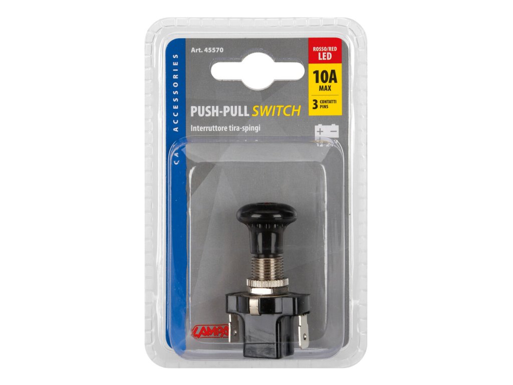Univerzální tahový spínač PUSH-PULL s integrovanou červenou LED diodou je ideálním řešením pro vozy, motocykly nebo pracovní stroje. Spínač je navržen pro provozní napětí 12V i 24V a zvládne zatížení až 10A. Díky robustnímu zpracování z tvrzeného plastu a nerezového hliníku (ALU) nabízí dlouhou životnost i při častém používání.