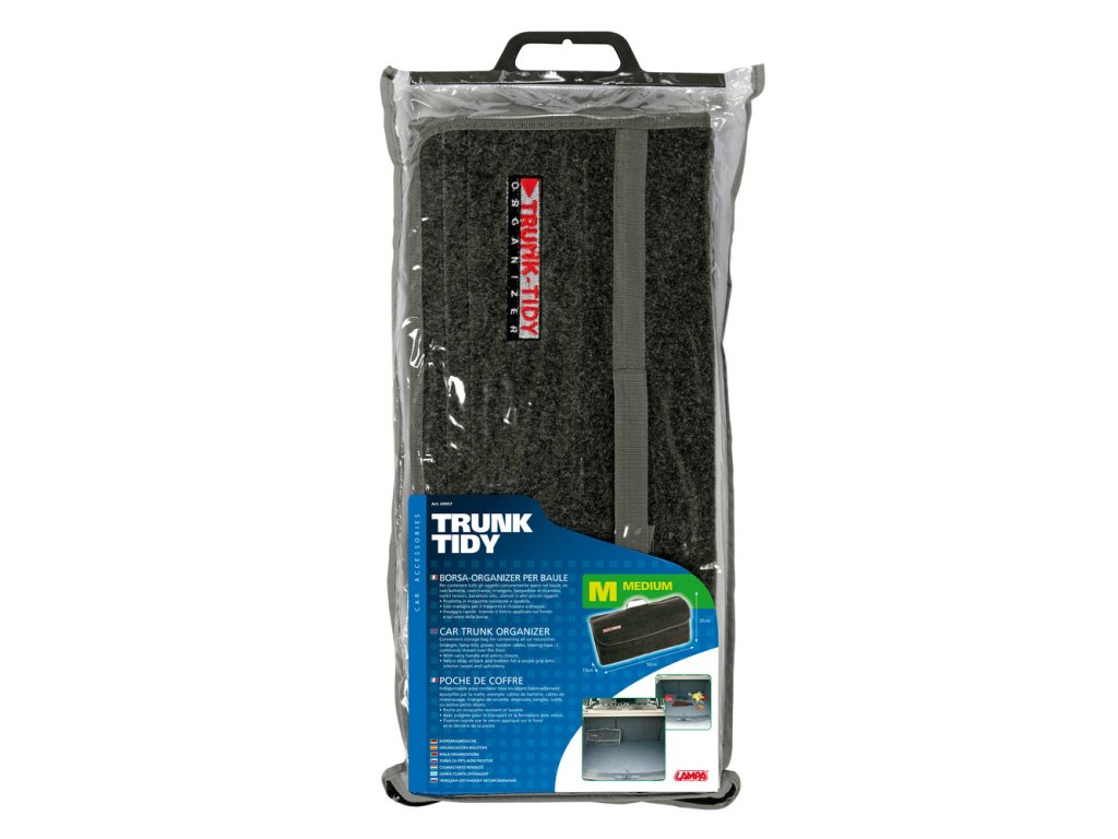 Praktická textilní brašna od italské firmy Lampa je navržena pro organizaci zavazadlového prostoru osobních vozů. Díky kompaktním rozměrům 25 × 50 × 15 cm nabízí dostatek místa pro nezbytné vybavení, přitom nepřekáží a snadno drží na místě díky suchým zipům.