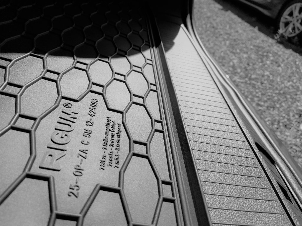Přesný typový gumový koberec do zavazadlového prostoru.