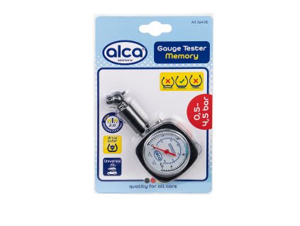 alca Gauge Tester Memory – přesný měřič tlaku v pneumatikách s paměťovou funkcí. Rozsah 0,5–4,5 bar, jednoduché použití, ideální pro auto i cestování.
