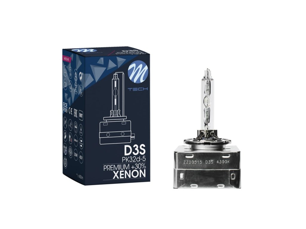 Xenonové výbojky M-Tech série „D-S“ jsou určeny pro vozidla vybavená čočkovými světlomety a plně kompatibilní se všemi typy originálních xenonových transformátorů. Tato verze ze série PREMIUM se vyznačuje vysokou kvalitou zpracování, delší životností a až o 30 % větším světelným výkonem.