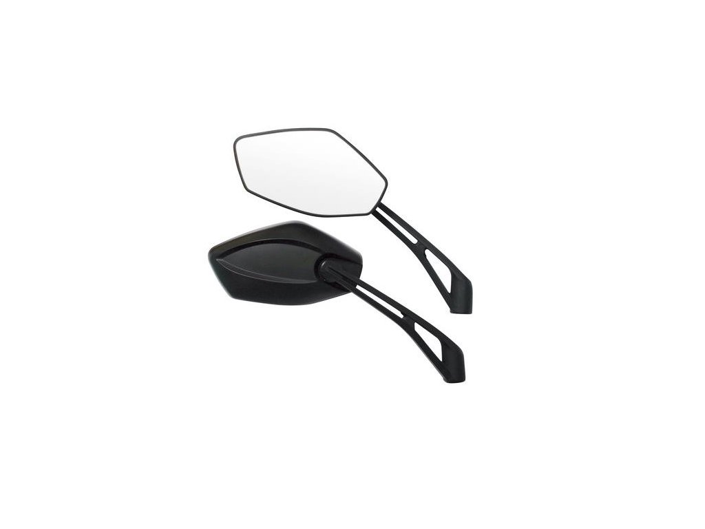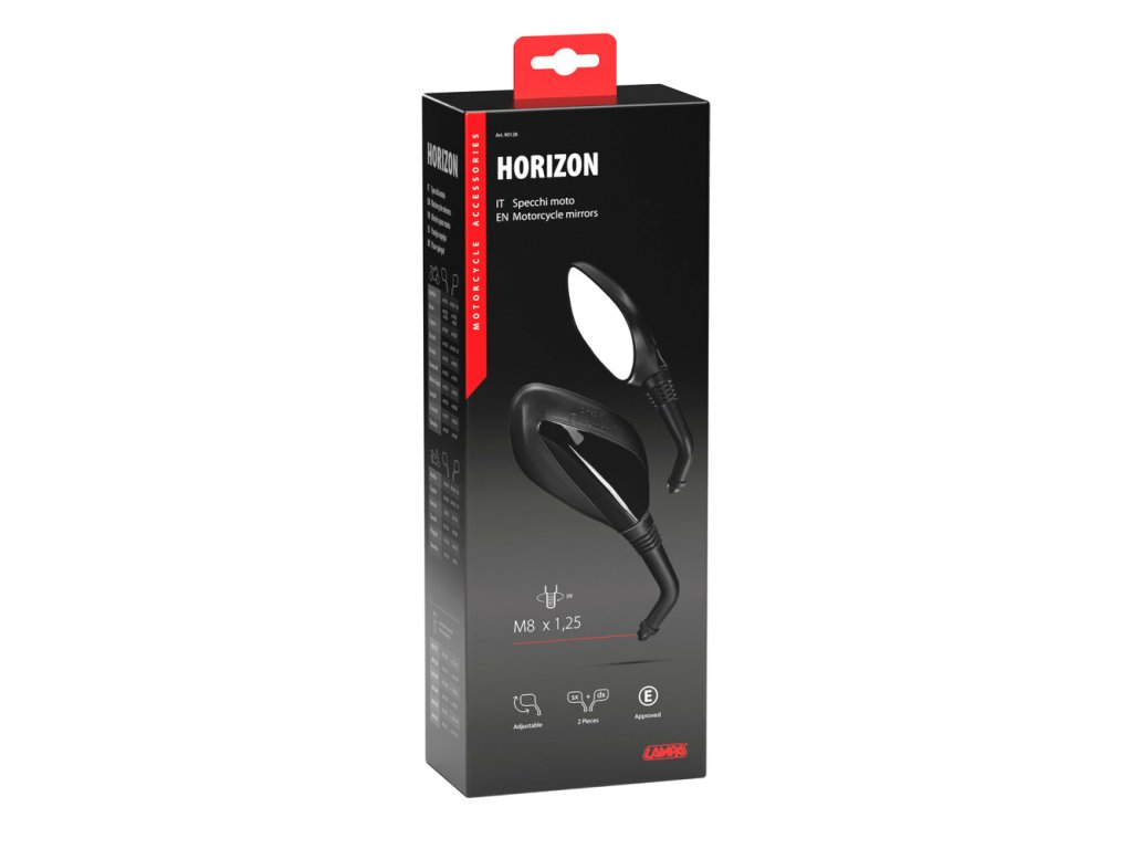 Univerzální zpětná zrcátka INFINITY black od italské značky Lampa spojují moderní design, funkčnost a homologaci pro bezpečné používání na veřejných komunikacích. Tato sada obsahuje 2 ks černých zrcátek s pravým závitem M10, která jsou vhodná pro široké spektrum motocyklů.
